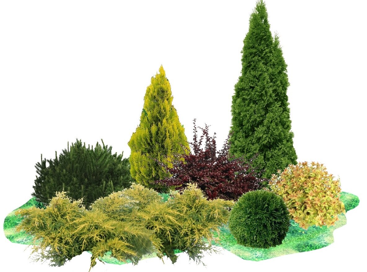 Сортов хвойных огромное количество, они отличаются по размеру, форме, цвету хвои. Благодаря такому разнообразию можно создавать миксбордеры из одних только хвойных культур, но можно также сочетать с различными лиственными кустарниками. Сегодня как раз такая композиция.