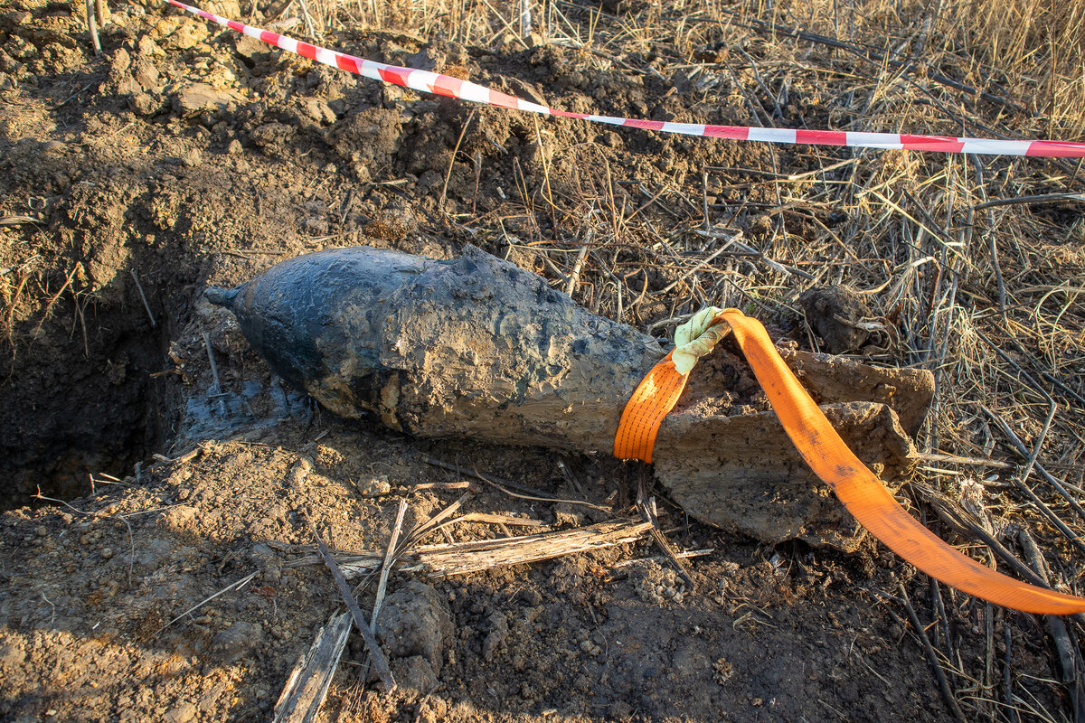 Прибывшие на место взрывотехники ОМОН Росгвардии выполнили обследование и установили, что это авиабомба (ФАБ-100) весом 100 кг времен войны.