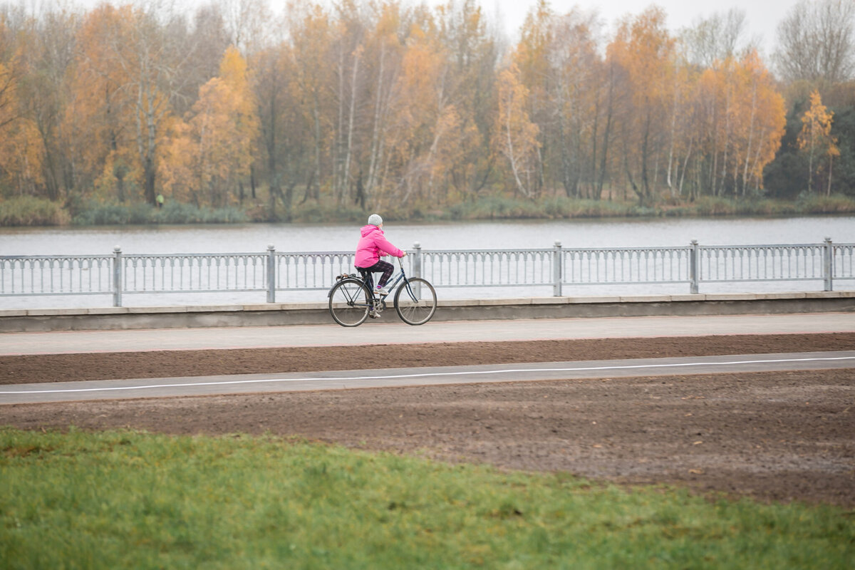 В плане архитекторов пешеходные и велодорожки виляют, раздваиваются, поднимаются на насыпные холмы и разделяются друг от друга зелеными насаждениями. Вместо привычного забора — естественный берег и деревянные настилы.