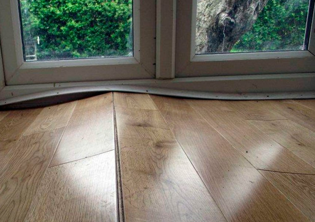 Покрытие состоит из древесины, значит зависит от влаги и температур. Поэтому, когда вам его привозят - оставьте на пару дней, пусть адаптируется, подстроится под температурно-влажностный режим вашего помещения.