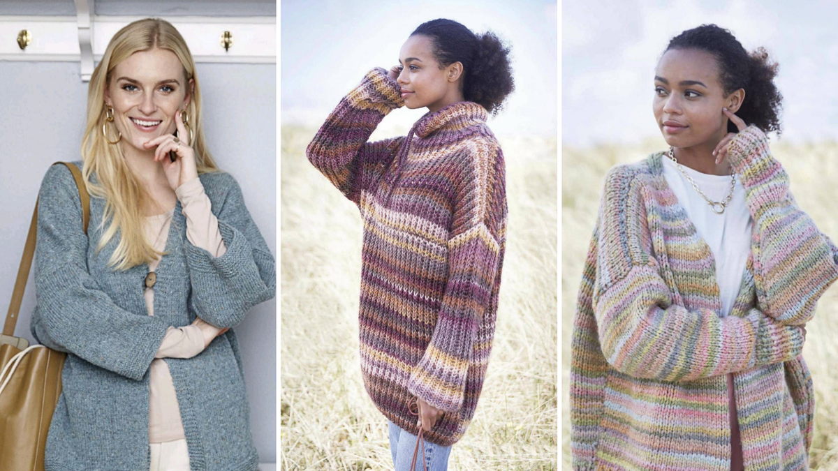 8 актуальных вязаных моделей с выкройками для вязания спицами и на машине.
