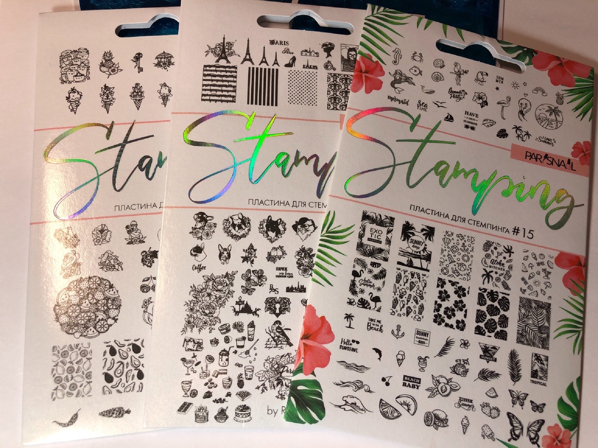 Сегодня на обзоре у нас ещё три стемпинг пластины от торговой марки ParisNail. Пластины, конечно, сейчас не совсем в тему, они все на летнюю тематику, но как говорится: