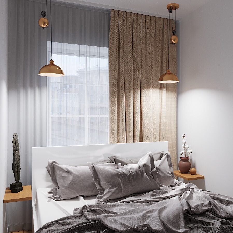 Выбрать настенные лампы, направление которых можно регулировать, или менее яркие светильники на длинном подвесе (если нужен только свет для настроения). Посмотрите, например, как решено освещение в проекте от UGOL.