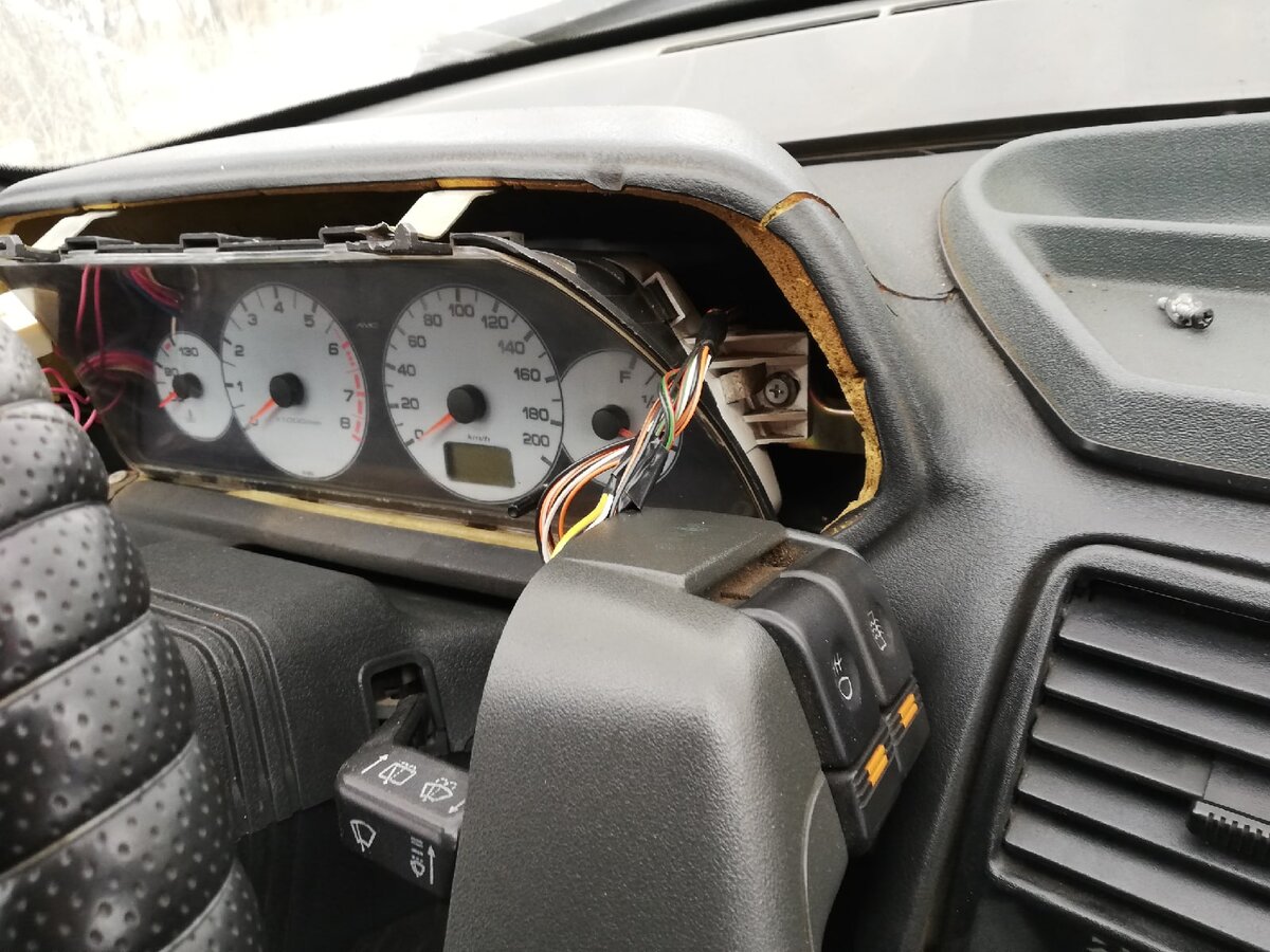 Для начала нужно снять верхнюю накладку со щитка приборов. 2 самореза находятся под "козырьком", еще 2 снизу самой накладки. После оттягиваем ее на себя и снимаем разъемы с кнопок.
