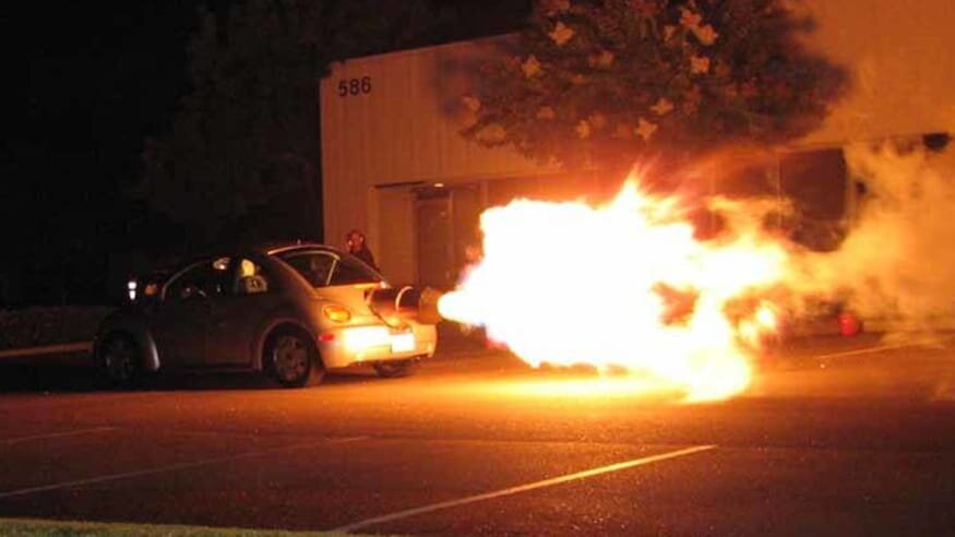 Если у вас вдруг появилось свободное место в гараже, а в кошельке напротив слишком тесно, то вот вам неплохой вариант потратить деньги. Эта машина называется "jet-powered Volkswagen New Beetle" и изобретена она Роном Патриком. Стоимость на рынке составляет 550 000 $.