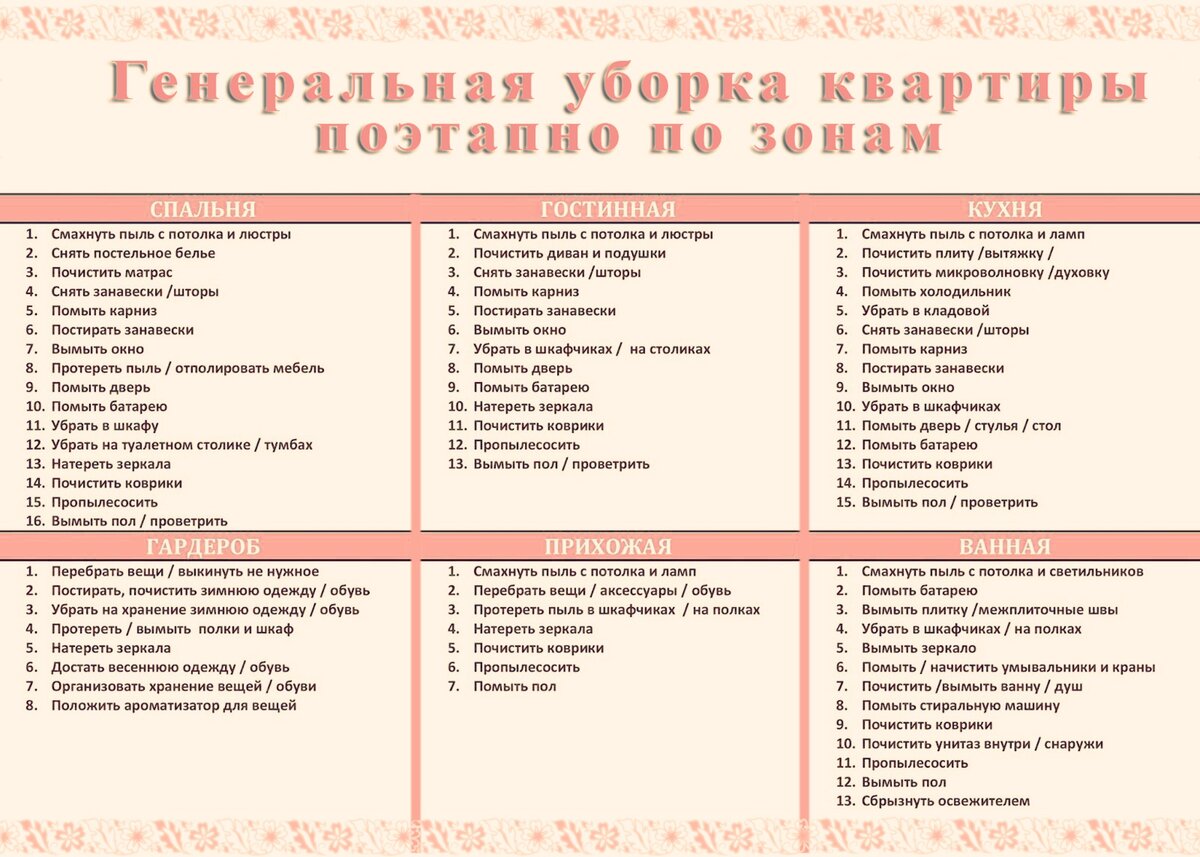 Имейте в виду, что генеральная уборка понимает под собой не только мытье полов и смахивание пыли. Так что вам желательно привлечь к ней супруга. Как правило, генеральную уборку начинают с комнат, понемногу переходя на кухню, потом в туалет и в ванную. При этом не забывайте выбрасывать ненужные вещи. Добивайтесь блеска.