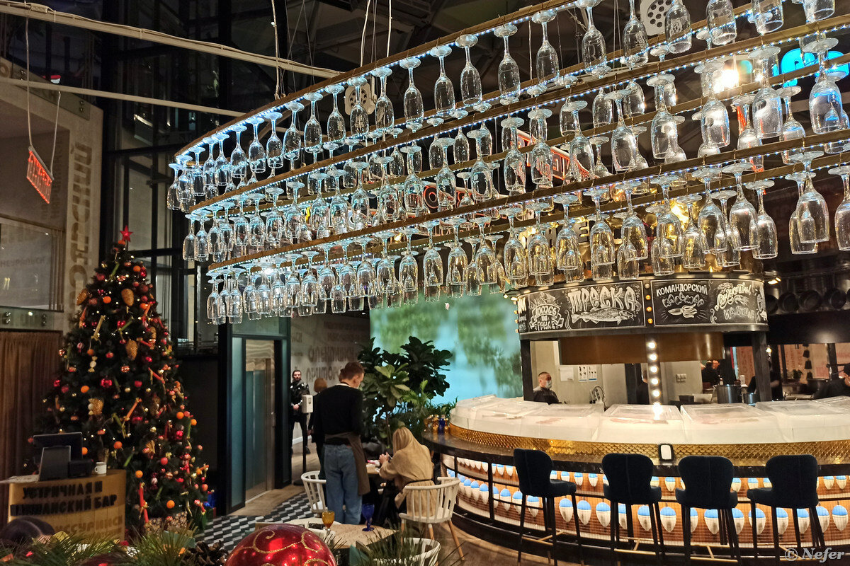 Помещение поделено на станции: Мясо Мясо, Лепильная, Расстегаи Кулебяки Пироги, Устричная и шампанский бар, Утки Гуси Перепелки, Креветки Крабы Лангустины, Супстанция, У самовара. В будни вечером народу немного, но на входе приходится ждать. Как только столик освобождается, хостес приглашает его занять. Наверное можно бронировать, мы зашли спонтанно.