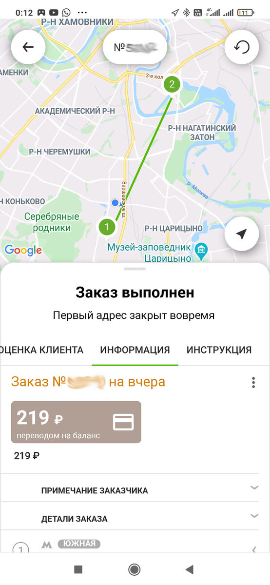Первым заказом в моем списке были документы, которые я должен был доставить от «Южной» до «Технопарка». Стоимость заказа была 219 рублей. Это меня слегка расстроило, но деваться было некуда – надо было с чего-то начинать.