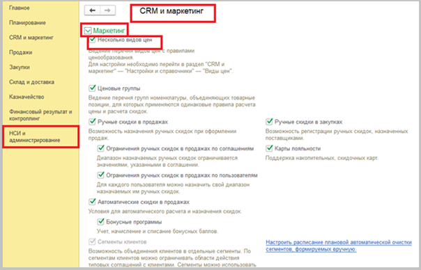 Каждый элемент этого справочника содержит основные параметры для установки цен номенклатуры, такие как