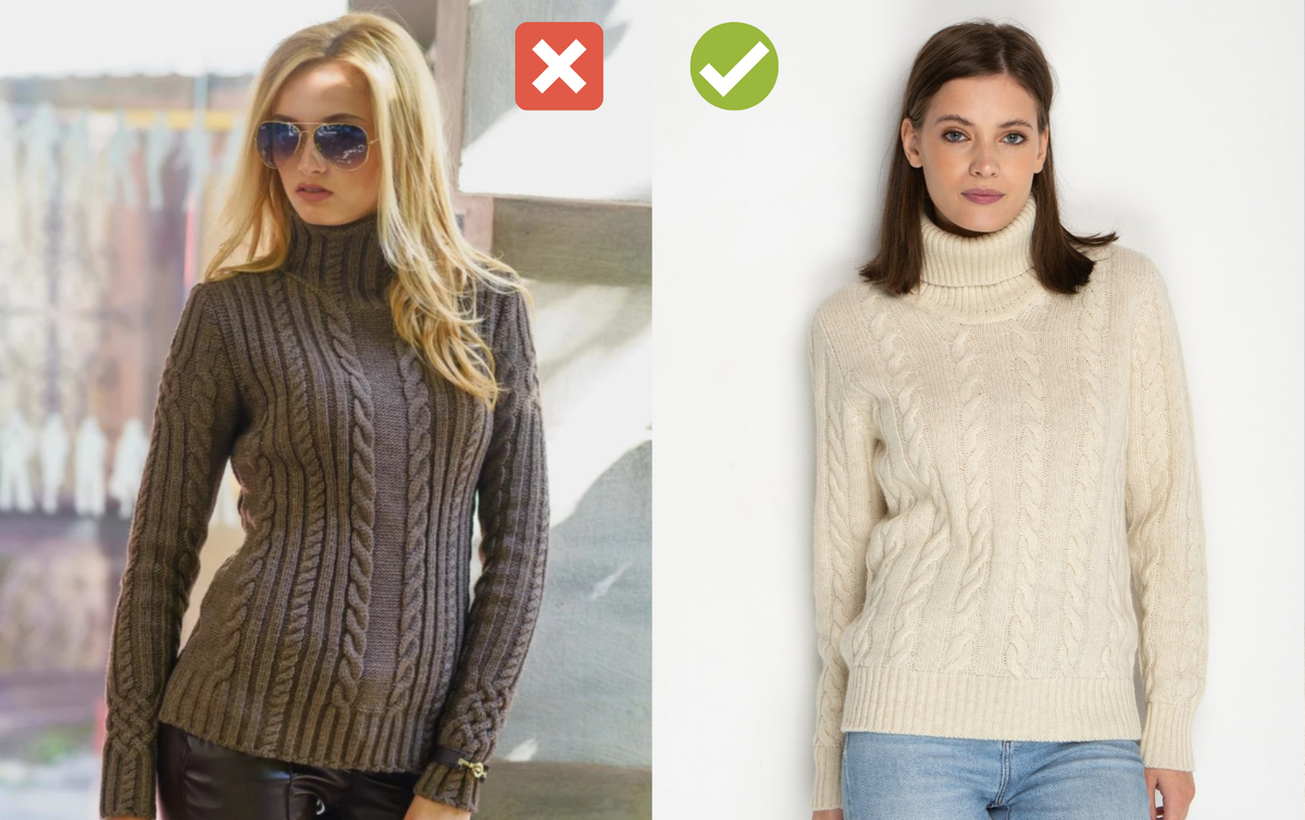 Тонкие колготки, короткие юбки, шифоновые платья – эти летние приветы в минусовую температуру выглядят абсолютно неуместно! Но это не значит, что зимой нужно отказывать себе в женственных образах. Просто выбирайте утепленные модели и надевайте их с плотными, не просвечивающими колготками. Например, я очень люблю носить миди юбку плиссе. В ней можно пойти и на работу, и на свидание. Ещё один популярный тренд – тёплые вязаные платья: из шерсти, пуха или кашемира.