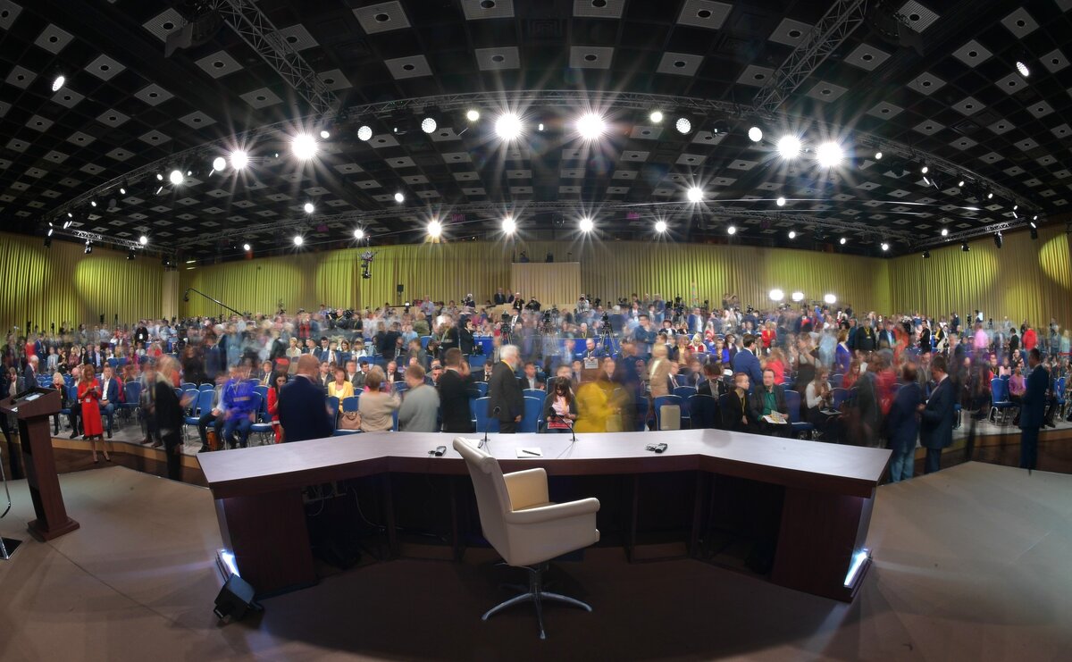 Что касается журналистов, то их число постоянно росло и к 2006 году превысило тысячу человек. Рекорд был поставлен в 2019 году, когда аккредитацию подтвердили 1895 журналистам. В этом году, впервые за 15 лет, число участников будет меньше тысячи. Судя по данным, опубликованным на официальном сайте президента, подтверждено участие всего 774 представителей СМИ. Больше 200 из них будут находиться на московской площадке, а у других резко возрастет шанс задать вопрос – на других площадках будет находиться по 60-70 участников – обратить на себя внимание так проще, чем тянуть руку в числе 2 тысяч коллег.