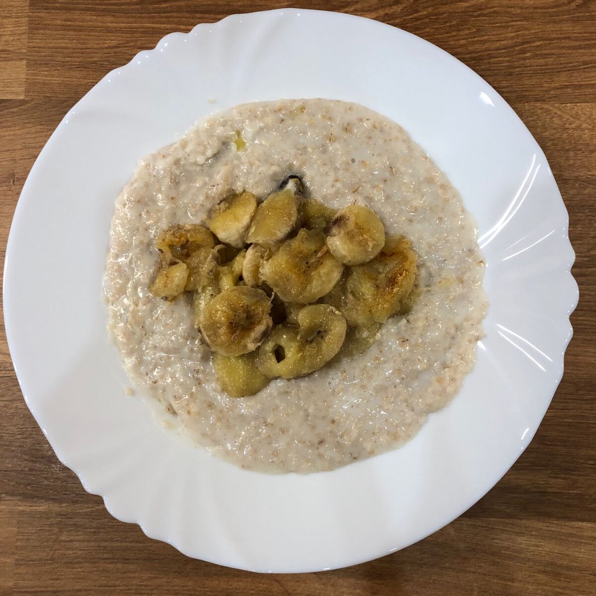 Готовую кашу перекладываем в тарелку, добавляем сливочное масло, перемешиваем, сверху выкладываем карамелизованные бананы. Вкусный, простой и сытный завтрак готов!