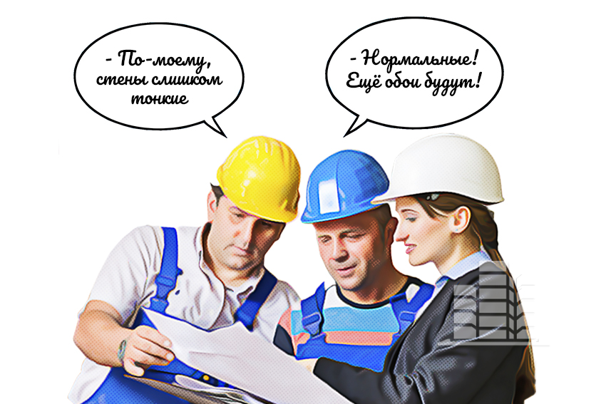 Застройщик готовит первоначальный проект и указывает в нем довольно внушительную толщину стен – 1 метр. Покупатели читают документацию и радуются, что будут жить в теплом и надежном доме. Обе стороны остаются довольны друг другом, подписывают все необходимые бумаги. Деньги клиентов «капают» на счет, стройка начинается.