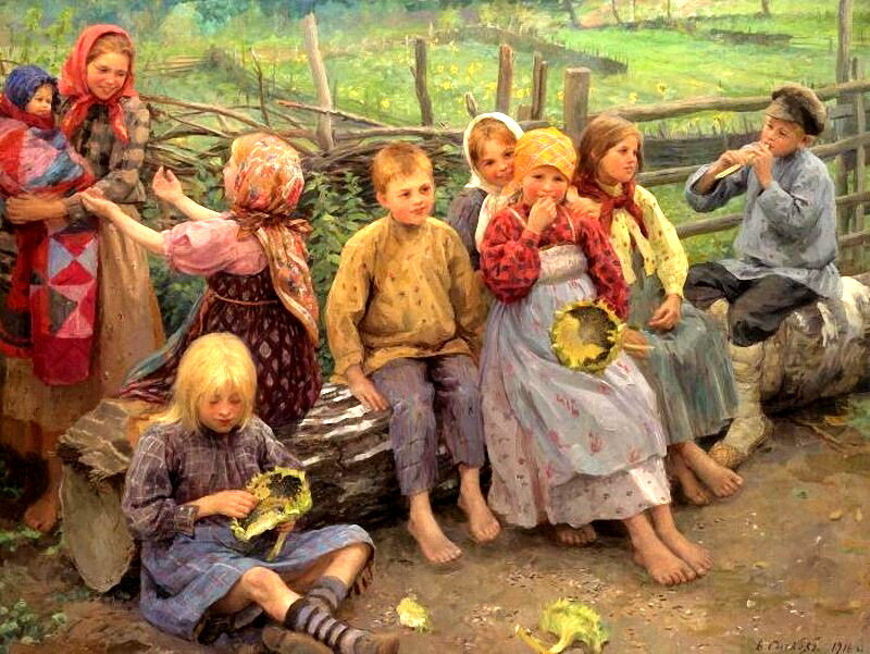 Детей приучали трудиться уже с семи лет. Считалось, «маленькое дело лучше большого безделья». Если о какой двенадцатилетней девочке говорили, что она «непряха», а о мальчике, что он «только и может гонять бабки» – это было большим позором.