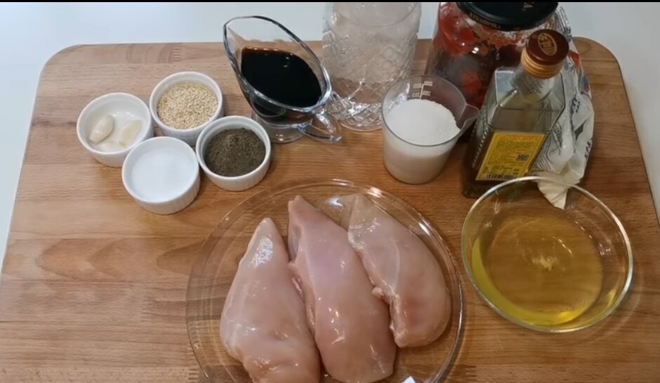 Для начало приготовим все ингредиенты, я буду готовить с куриного филе.
