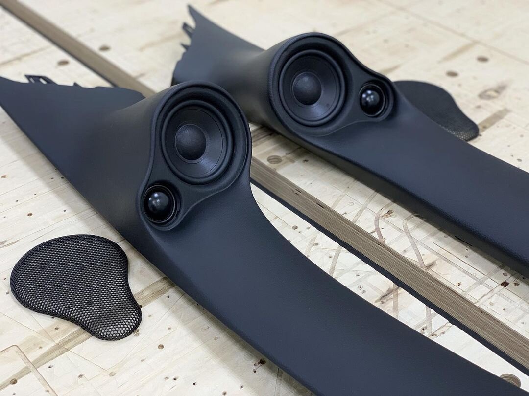 Мы продолжаем работу над проектом для Lada Vesta и сегодня покажем готовые стойки лобового стекла с подиумами под ВЧ и СЧ динамики бренда Dego серии Powerline