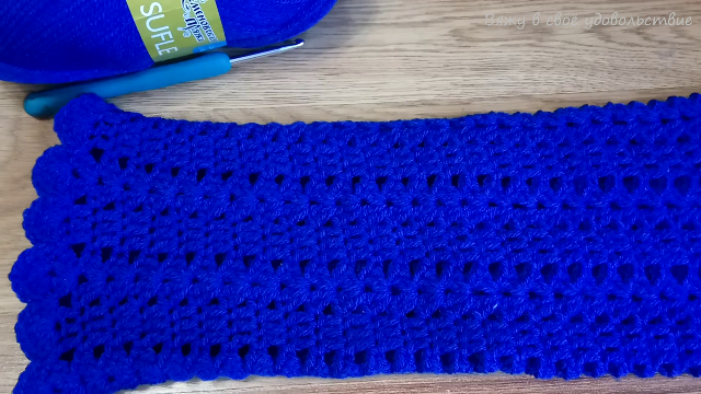 Обвяжем последний ряд веерочками, чтобы украсить край.