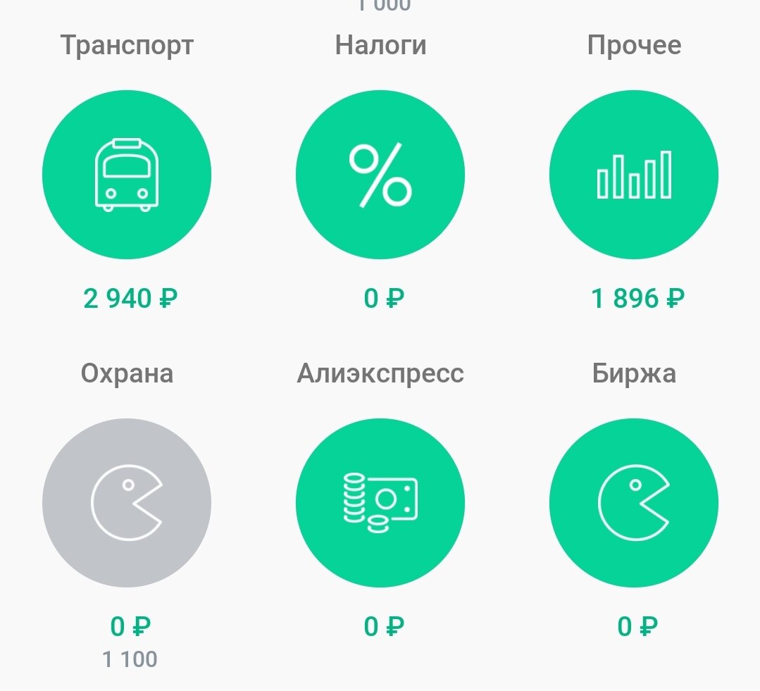 Например, есть кружок "Зарплата". Когда поступили деньги, всё, что нужно сделать - свайп из этого кружка в "Карман" или "Карта". Далее указать сумму и всё!