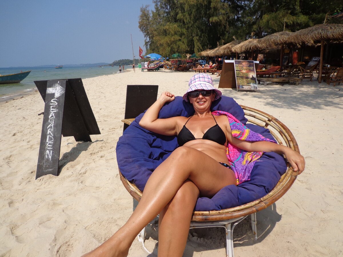 Всем привет! Вы на канале "Дневник Заядлых Зимовщиков". 8 зим мы с мужем проводили в тепле, в странах ЮВА. Этот год, по известным причинам, мы будем зимовать не под пальмами, а со снегом в России. Но мы надежды не теряем и верим, что наша девятая зимовка еще состоится! А пока ударимся в воспоминания... Продолжаю рассказ о нашей второй зимовке, которая продлилась с сентября 2013 года по апрель 2014 года. Начало нашей зимовки - ЗДЕСЬ В один из дней нашего отдыха в Сиануквиле, мы с друзьями решили съездить до самого красивого пляжа под названием Отрес (ударение на О). С нашего пляжа Виктори до Отреса мы доехали на тук-туке за 5$ (тогда это было 150 руб.). Пляж этот находился в противоположном конце, на южной оконечности города. На Отресе самая чистая и самая прозрачная вода и самый белый песок. Еще одна особенность этого пляжа - хвойные деревья. На пляже, как обычно, ходят торговки фруктами. Посмотрите как они носят фрукты)). Над морем летают парапланы. Накупавшись в море мы решили пос