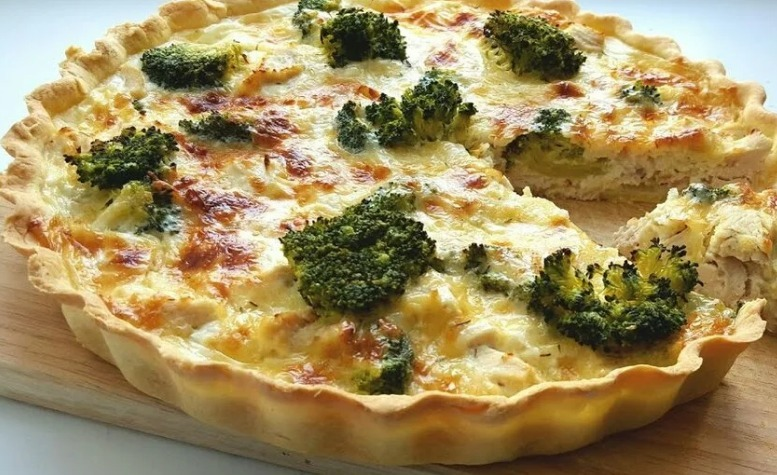 Смешиваем брокколи с рыбой. Выкладываем начинку в форму с тестом. Смешиваем 2 яйца и сметану, готовя заливку, добавляем специи, по желанию можно поперчить, но не добавляем соль. Хорошо перемешиваем и заливаем начинку. Посыпаем сверху натертым сыром и отправляем в духовку. Готовим 30 минут при 180 градусах.