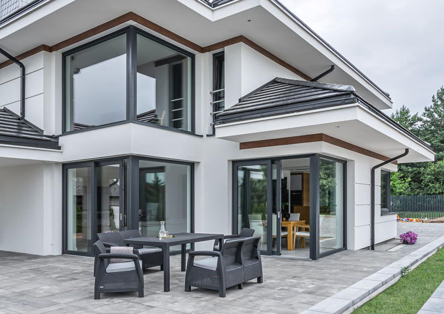 Окна с более тонкими профилями охотно выбирают для современных домов. Они лучше сочетаются с геометрическими формами зданий и минималистичным дизайном интерьера. Более узкие профили позволяют увеличить площадь остекления и сделать интерьер лучше освещенным. Кроме того, элементы дизайна становятся менее заметными. В результате панорамные алюминиевые окна пропускают больше естественного света.
