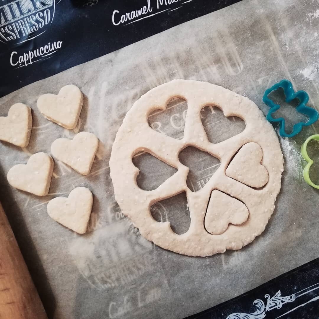 Достав его с холодильника, вы сразу заметите улучшившуюся консистенцию теста, это потому что масло замерзло. Не нужно его снова вымешивать, достаточно пару раз разомнуть руками и начать раскатывать. Немного присыпьте поверхность мукой и раскатывайте примерно полсантиметра толщиной. Если тесто все же «поплыло» при комнатной температуре, можете для удобства раскатывания поместить его между двумя листами пергамента.