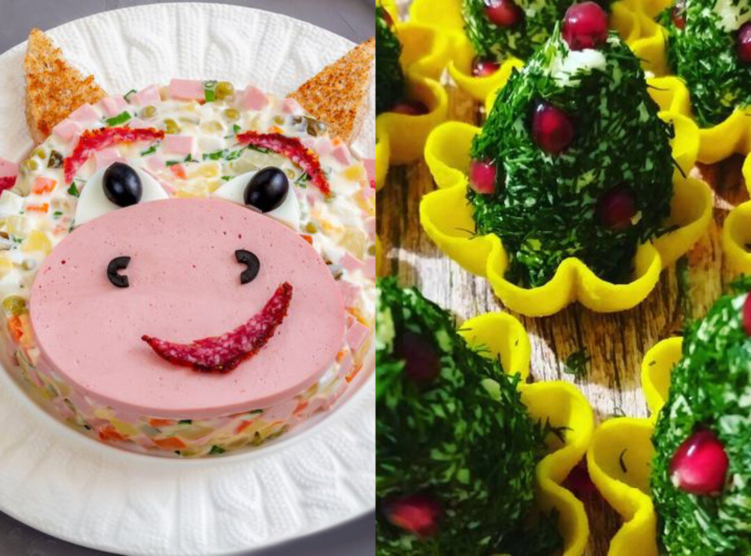 Следующий год будет проходить по покровительством Металлического Быка. Поэтому оригинальная закуска в образе символа года будет как нельзя кстати. А для тех, кто не привык экспериментировать, за основу взят всеми известный салат.