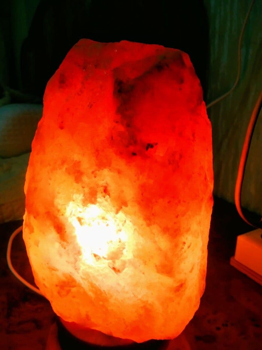 Соляная лампа - это, по-сути, кусок природной каменной соли. Внутри него высверлена полость, в которую вставляется обыкновенная лампочка, закрепленная на подставке. При включении, лампочка нагревает соль. И она, взаимодействуя с влагой воздуха, начинает выделять ионы йода, брома, натрия и хлора. Происходит ионизация воздуха, чем, собственно,