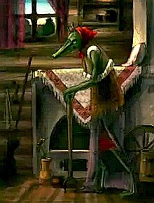 Как-то явилась к ним старая нищая бродяжка и вызвалась избавить их дом от нечистой силы. Сказала им: "В среду запрягите дровни (сани)".