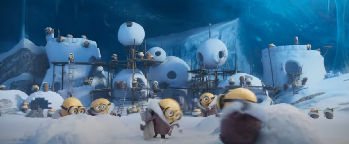 7.И все же, вернемся к миньонам в ледяной пещере. Откуда они достали или из чего сделали эти розовые помпоны? Откуда они умудрились достать футбольные ворота и мяч? У них какие-то склады тайные в пещере есть? На сколько, я вижу, там ничего, кроме тонны льда и снега нет!