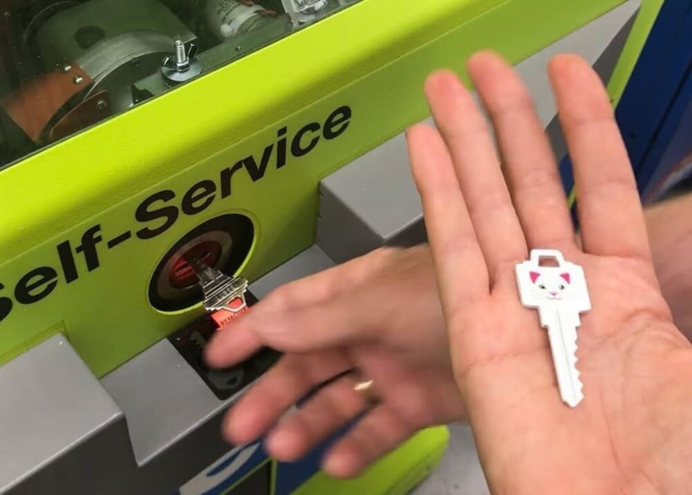 - KeyMe — оператор киосков самообслуживания для изготовления дубликатов ключей от домов и гаражей. При этом есть функция, которая позволяет клиенту выбрать форму ключа. Благодаря станку, который установлен внутри аппарата, можно изготавливать не просто дубликат ключа, а интересную вещицу по предпочтениям клиента.