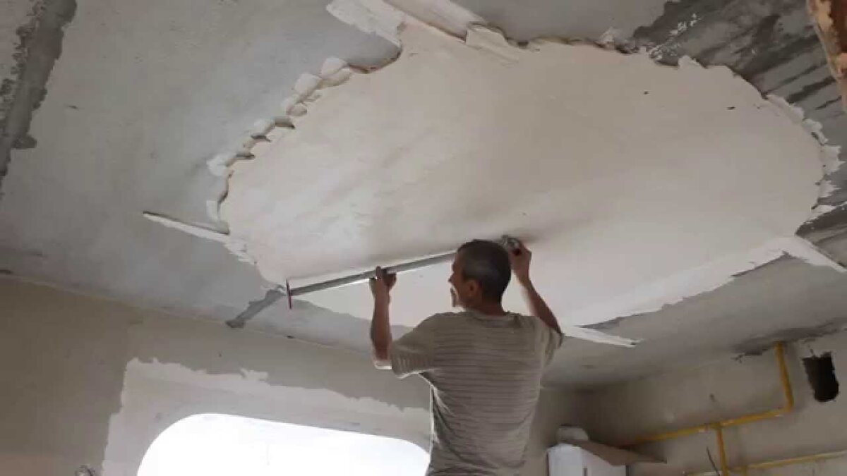Отклонения не превышающие пятидесяти мм считаются незначительными и для их устранения достаточным будет использование сухих строительных смесей: штукатурки, шпаклёвки, а также грунтовки. В начале загрунтуйте поверхность потолка, чтобы наносимые после этого материалы дольше держались и лучше ложились. При этом также укрепляется поверхность и заполняются все дырочки, неровности и впадинки.