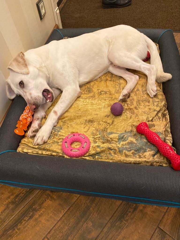 В новом доме хозяева тут же заказали новоселу отдельное специальное двуспальное ложе и завалили его игрушками. После приютских опилок на дощатом полу- разительный контраст