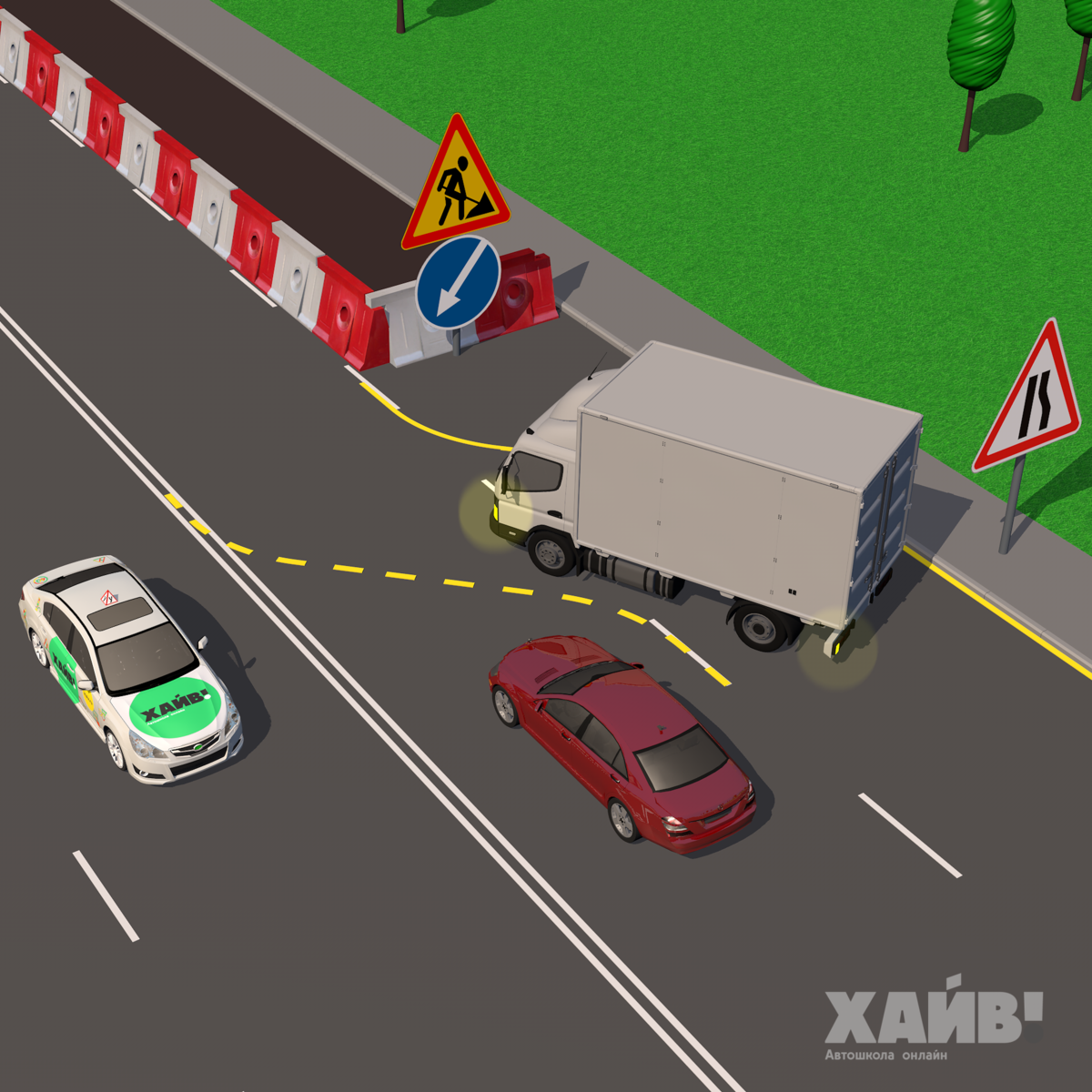 Временная разметка дает грузовику преимущество? Как считаете? Ждем в комментария ваши версии, кто в данном случае должен уступить дорогу. Пара слов про разметку. Разметка может быть постоянной (белые линии) или временной (оранжевые линии). И как со знаками, временная разметка – важнее постоянной. Только если она противоречит знакам, то ориентироваться нужно на них! В случае с нашей задачей ПДД уступает легковой автомобиль. Преимущество - у грузового авто. Согласно Приложению 2 к ПДД: