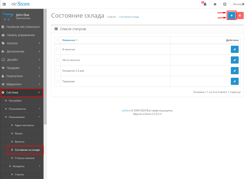 Статусы товаров на складе в Opencart позволяют менять отображение на сайте, тем самым предупреждая пользователей об особенностях работы компании. Видеоинструкция Как создать новый статус товара на складе в Opencart Для этого переходим в «Система»-«Локализация»-«Состояние на складе» после чего кликаем на «Добавить». Вводим название нового статуса. Теперь он появился в общем списке. Изменение статуса Чтобы изменить его потребуется перейти в «Каталог»-«Товары» и напротив нужного товара нажать на «Редактировать». Переключаемся во вкладку «Данные». Чуть ниже видим пункт «Отсутствие на складе» где можно выбрать новый элемент. Все готово. Источник: https://seopulses.ru/status-tovarov-v-opencart/ Подписывайтесь на наш Telegram-канал Подписывайтесь на наш Youtube-канал Подписывайтесь на нашу группу ВКонтакте