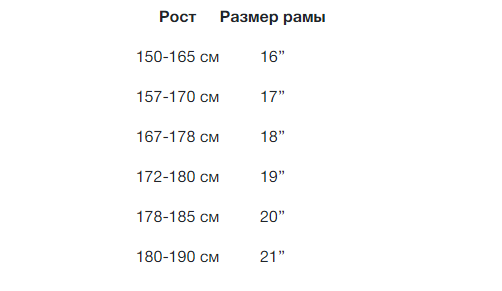 Если рост попадает в смежные значения, стоит отдать предпочтение раме, которая ниже, особенно когда речь идет о покупке велосипеда для начинающего спортсмена.