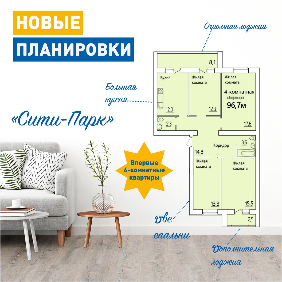 💥Впервые в этом жилом квартале в продаже четырехкомнатные квартиры, этот вариант идеально подойдет для многодетной семьи.