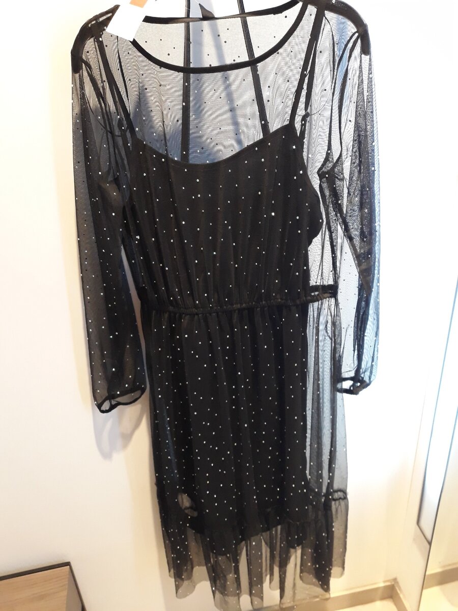 Приветики мои дорогие. Решила немного изменить секонду и отправилась для подготовки нового обзора в обычный магазин. Вообще, гуляя по ТЦ обратила внимания что нарядной одежды ничтожно мало. Особенно платьев. Даже в выбранном мной массмаркете нарядных платьев было от силы 5 вариантов. Не буду долго тянуть и покажу что выбрала. Понравилось платье своей воздушностью. Вот цвет бы другой, более яркий. Новый год как никак впереди. Сверху сетка с приклеенными стразиками. Во внутрь вшита сорочка. Все бы ничего, но сорочка сильно наэлектризовалась и облепила ноги. В целом неплохо, но это не праздничное платье. Бархатное классическое платье. Цвет в наличии только черный. Минус платья - пылесборник. Липнет нему всякая гадость. Смотрится хорошо. Как же я люблю все блястючее ! Аж глаз радуется! Минус платья- блестки сыпятся дуром. Смотрится красиво и так же красиво сияет. Понравилось классическое офисное платье. Но на мне оно не смотрится. Не чувствую себя в нем красоткой. Сейчас в тренде в