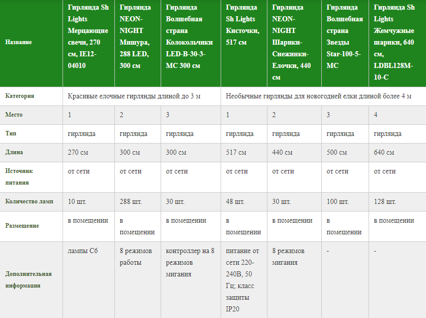 Красивые елочные гирлянды длиной до 3 м