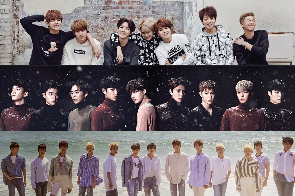 На первом месте всеми известная мужская группа: BTS