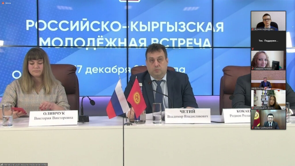 17 декабря 2020 года состоялась онлайн-встреча представителей молодежных объединений России и Киргизии. Встреча собрала более 70 участников из многих регионов нашей страны и Киргизской Республики. Участники вели работу по двум направлениям: «Вызовы для развития молодёжного предпринимательства» и «Тенденции развития молодёжного туризма на евразийском пространстве».
