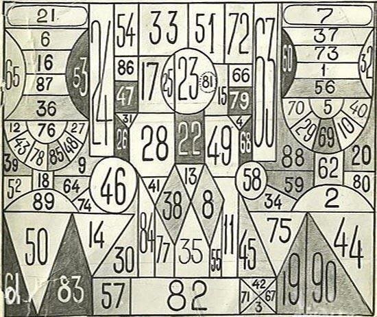 Найдите на этой таблице последовательно цифры от 1 до 90 включительно.