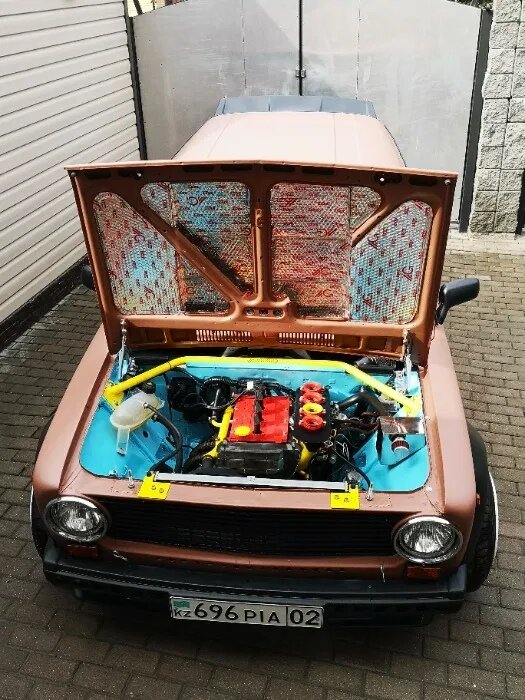 Блок 11193, Поршня производства EVA кованый, диаметр 84мм 3-кольца, палец 19 мм, Шатун 129 мм кованый производства ОПП, Установлены масло форсунки охлаждения днища поршня, Коленчатый вал с ходом 84мм, шейка шатуна 47.8 мм, Шкив коленчатого вала облегчённый, материал Алюминий, Масляный насос увеличенной производительности, Поддон против отливной с изменённой геометрической формой с масло-сливом, ГБЦ 2112 16 кл., Болты крепления ГБЦ 12мм Альфарамэо, распредвалы Стольников 10.5/306 под гидро компенсаторы , Торцовка под пружинки распредвала Opel 2.0, Клапан впуск 32мм, Клапан выпуск 29мм, Портинг 39.5 мм впуск/38мм выпуск, Перекрытия впуск 4.5 мм, выпуск 3.5 мм, Разрезные шестерни Торг-маш, материал сталь с регулировкой 360 гр, 4-ёх дроссельный впуск Black Top Toyota, ДПДЗ Toyota, ДаД Toyota барокорекция, Клапан Холостого Хода выносной 21214, Фильтр нулевого сопротивления ITG, Рампа с обраткой 2112, Бензонасос погружной 255л/час , Топливная магистраль полиуретан, Форсунки Subaru 550cc розовые с удлинителями, Регулятор давления топлива 3.8 бар, Прокладка ГБЦ21126, Компрессия 12Атм, Степень сжатия 11.7, маслоотделитель картерных газов со сливом в поддон Custom , Помпа Luzar turbo 2112, ГРМ 2112 Гейтс спорт усиленный, ролики спорт усиленные металлические, Опоры двигателя 21123 Нива Сэви экстрим, Выпуск на 63 трубе, паук 4.1 Custom сталь 20, изоляция термолента , Резонатор 63мм с гофрой,., Бочка Magnaflow 63мм, Радиатор 21214 Нива инж., термостат 2101, Стартер редукторный 2101, Генератор Bosch 115 Ам, Вентилятор охлаждения основной 14 дюймов рабочий режим авто 92-95С ,вентилятор дополнительный 12 дюймов рабочий режим авто-ручной 92-98С, Свечи Denso 7-ки, высоковольтные провода 2112 Sport, Модуль зажигания 2112, клапанная крышка плоская без вентиляции картерных газов Custom, Балка ДВС усилена пластиной 2мм.