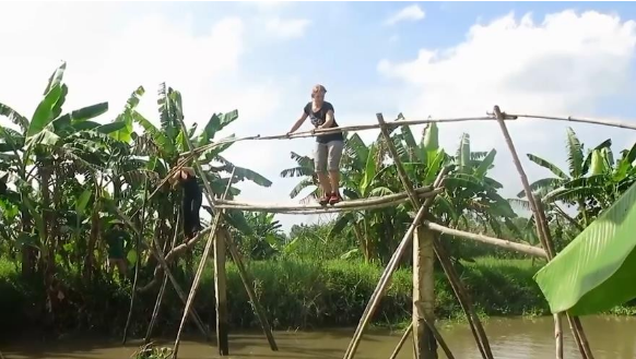 Мост обезьян во Вьетнаме. В дельте Меконга на юге Вьетнама вы увидите странное строение, которое немного отличается от известного нам моста, потому что кажется, будто оно связано бамбуком, чтобы люди могли переходить реку. Но его зовут Мост обезьян, именно так называли этот мост иностранцы, посетившие Вьетнам, потому что считали, что по нему могут пройти только обезьяны. Вообще говоря, этого бамбука должно быть недостаточно, чтобы выдержать человеческий вес. Но на самом деле жители, живущие поблизости, худые. Переходить по мосту не составляет труда. Они как артисты из стальной проволоки в цирке, легко могут забраться на бамбук. Если вы, высокий иностранец и хотите попробовать пройти по разрушающемуся бамбуковому мосту на другую сторону, вам будет слишком страшно, открыть глаза.