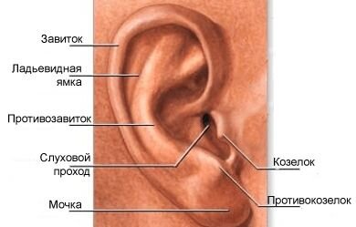 Как и остальные части лица мы рассмотрим строение уха: