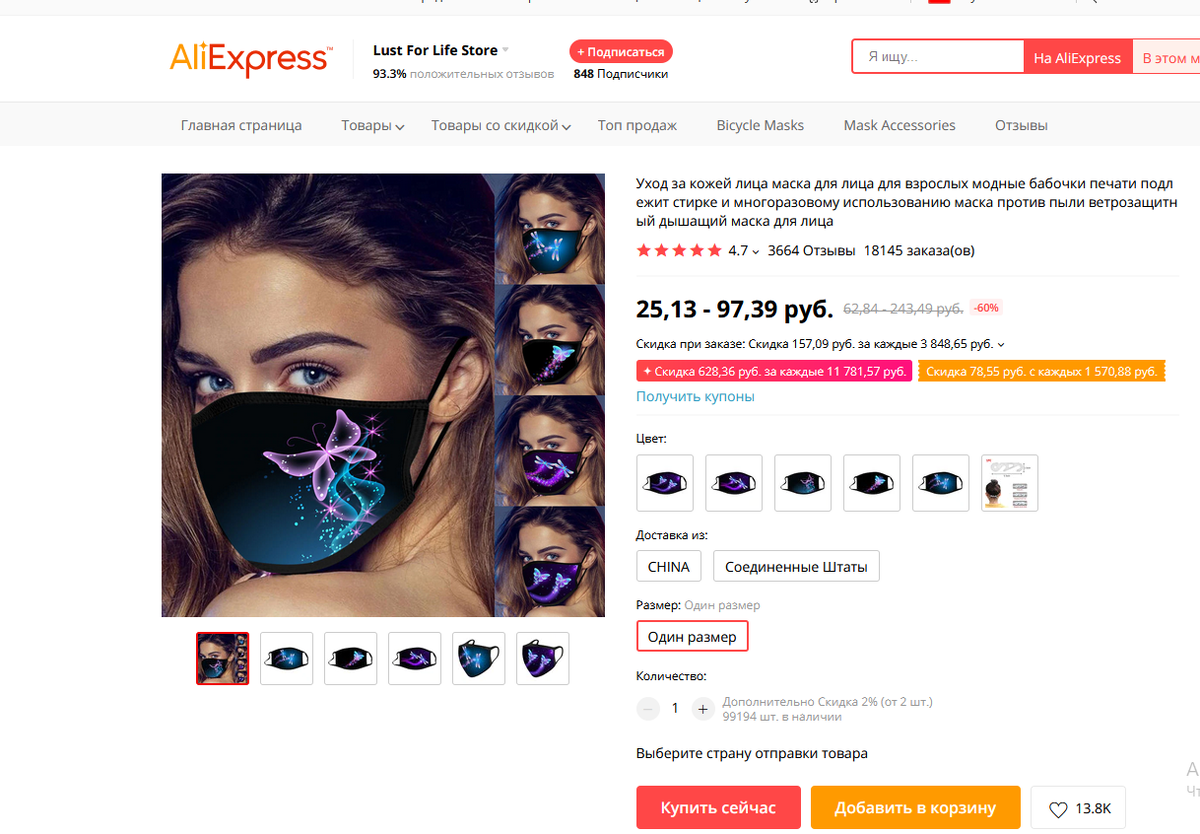 Через неделю в Ростове-на-Дону была получена вторая маска с бабочкой. Так как это был тот же продавец, то я уже и не удивилась.