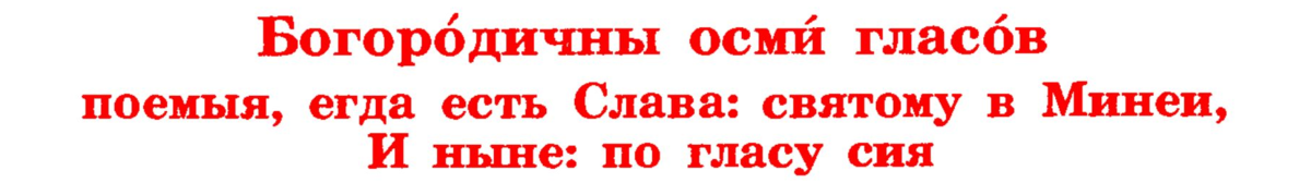 Точно так же выглядят и все подобные указания на богородичны в наших сегодняшних примерах, "егда есть Слава: святому в Миени, и ныне, по гласу сия".