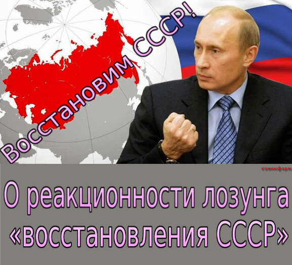 В данный момент данный лозунг крайне реакционен и с повестки дня должен быть решительно снят всеми, кто причисляет себя к коммунистам. Нет сейчас у не организованного в класс пролетариата ни малейшей возможности восстановить СССР на основе пролетарской диктатуры.