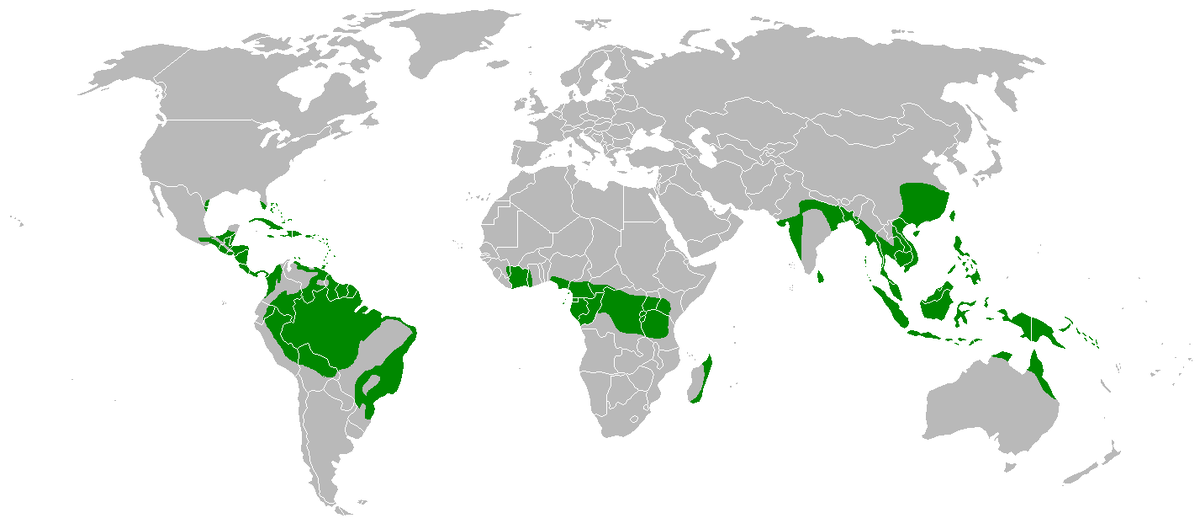 Влажные экваториальные леса на карте Мира.