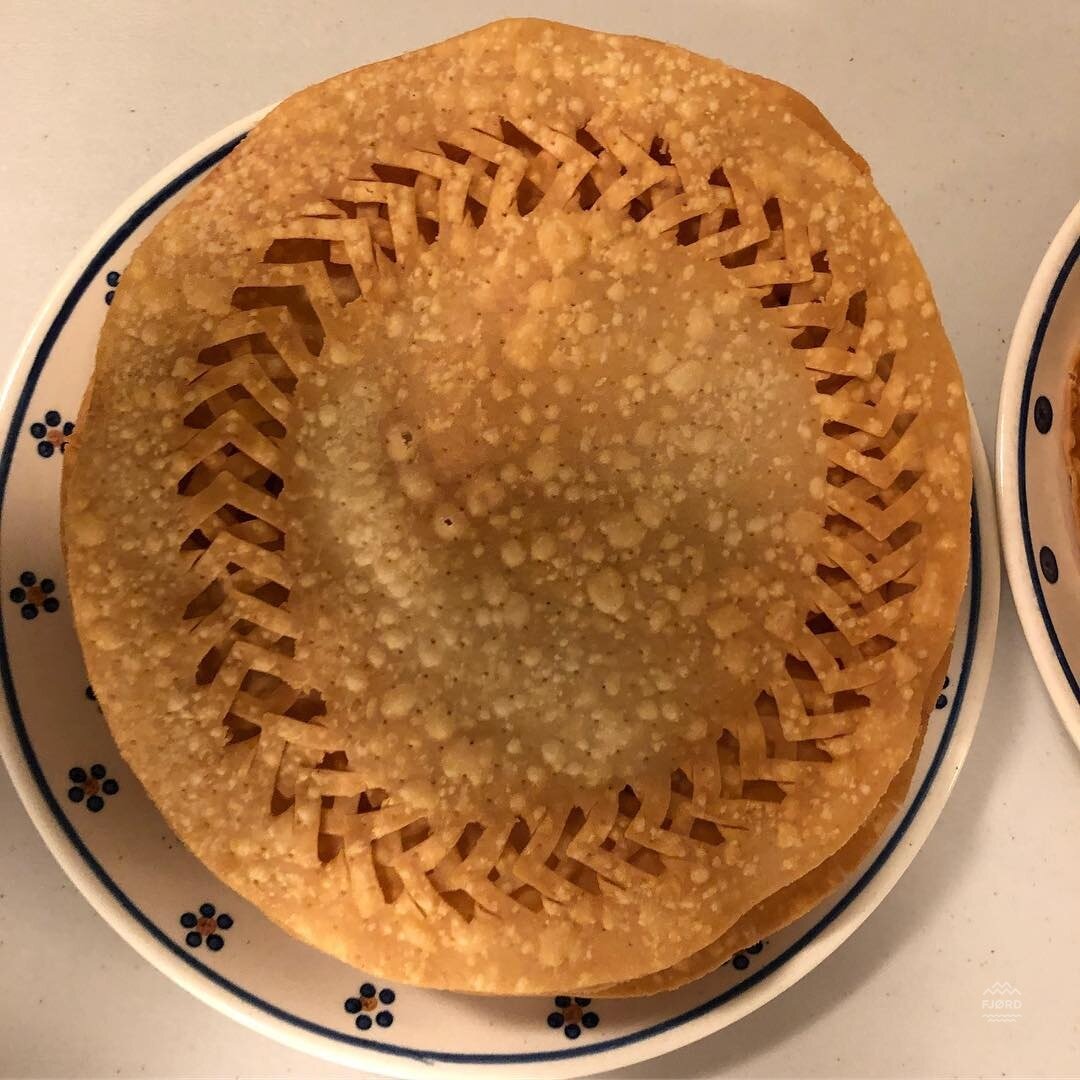 1. laufabrauð - Лейвабрёйз - специальный рождественский хлеб. Если вы смотрите наши сторис в инстаграме, вы уже в курсе, что пекут его только в декабре. Делают тесто, раскатывают очень тонко, а затем, наносят ножом ажурные узоры. Это кропотливое занятие, которое является скорее традицией для многих исландских семей. Затем тонкие "блинчики" выпекают на сковороде в масле. По вкусу этот хлеб отдаленно напоминает известное советское лакомство "Хворост". Обычно его подают к бараньему мясу - хангикьёту.